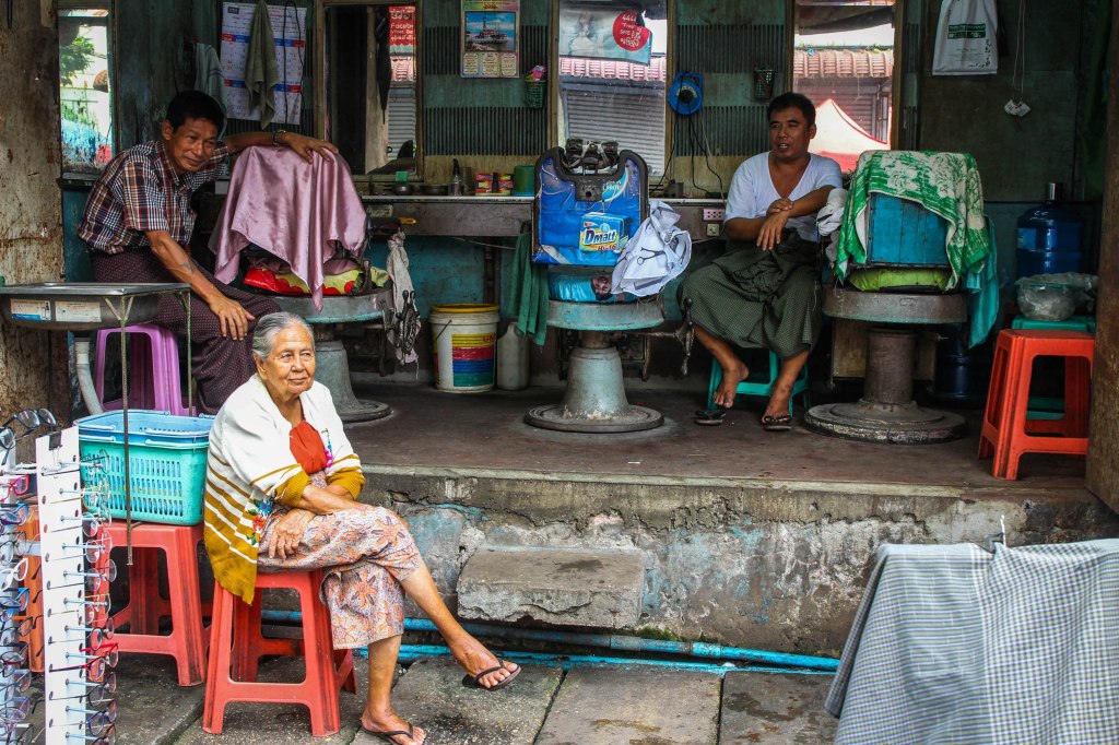 La meraviglia di lasciarsi stupire da città mai attraversate prima, colorate, avvolgenti. Usanze a te sconosciute, odori e sapori nuovi. Una vita che brulica per le strade e che ti affascina proprio per quanto è diversa dalla tua. Riguardando foto casuali di viaggi diversi, la mia attenzione è stata spesso attirata dal tema vivace delle botteghe. Un soggetto che trovo particolarmente interessante, soprattutto in contesti a cui non siamo abituati. Come questo negozio di barbiere per le vie di Yangon, che chissà per quale motivo mi è rimasto appiccicato al cuore. O i mercati e le bancherelle in strada, sempre così vibranti e pieni di vita, che ci passerei ore ed ore.