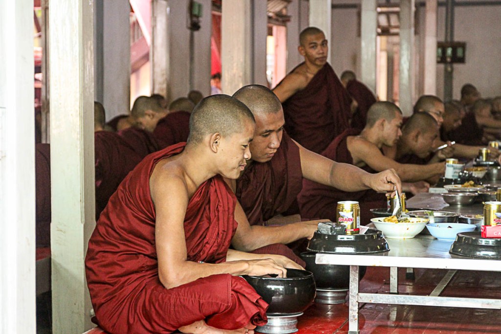 Contrasti. Il rosso avvolgente delle tuniche, il rumore delle stoviglie, il profumo di cibo. E in retroscena, lo sguardo profondo di chi non riesce a sfamarsi
