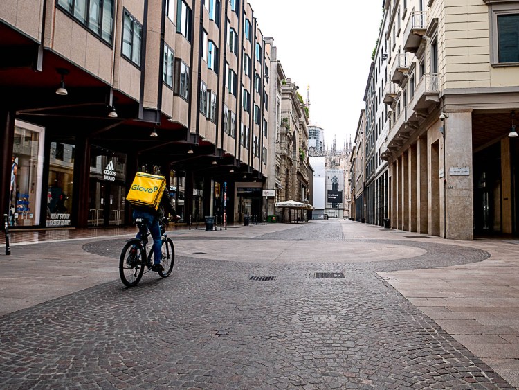 A casa. La Milano dei Glovo. Una città all’apparenza deserta, dove le persone in realtà si stanno proteggendo al loro meglio dentro l’abbraccio premuroso delle loro case