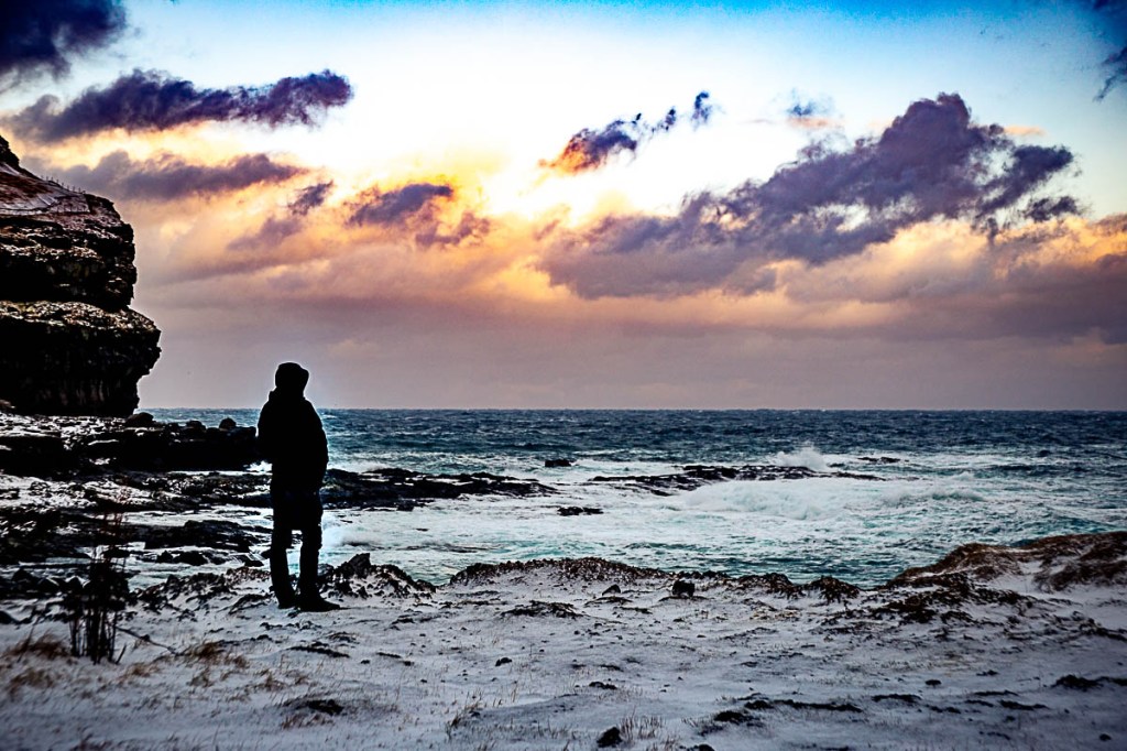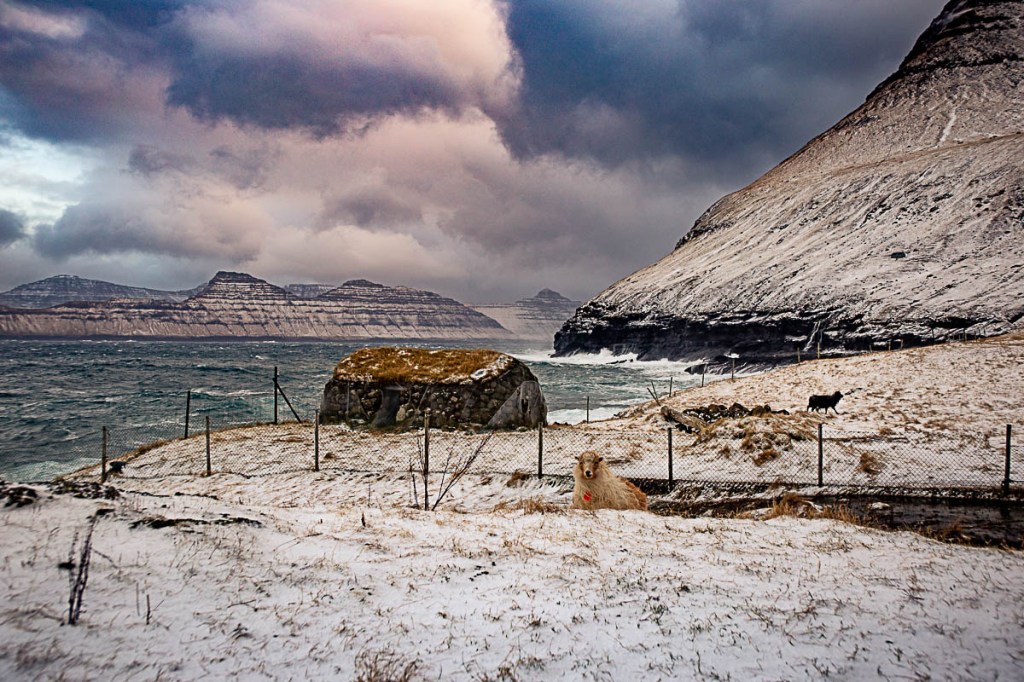 Una natura dall’energia potente, ma trattenuta, arginata dal mare e dal vento. Popolate da pochissime specie animali (pecore, qualche papera, conigli la notte, salmoni e merluzzi), poche specie vegetali (quasi nessun albero, erba e tuberi), e ancora meno esseri umani. Dove gli elementi atmosferici prevalgono su ogni cosa, dove in un giorno tutto si accavalla e il vento ti porta via, impigliandosi nelle pale eoliche e arrotondando le asperità, che restano però appiccicate alle persone, accoglienti, ma schive.